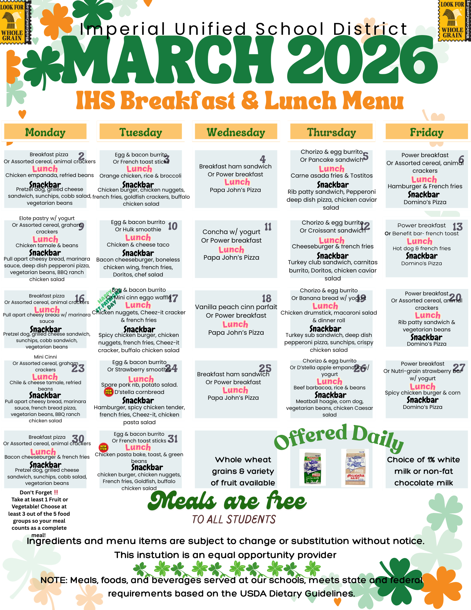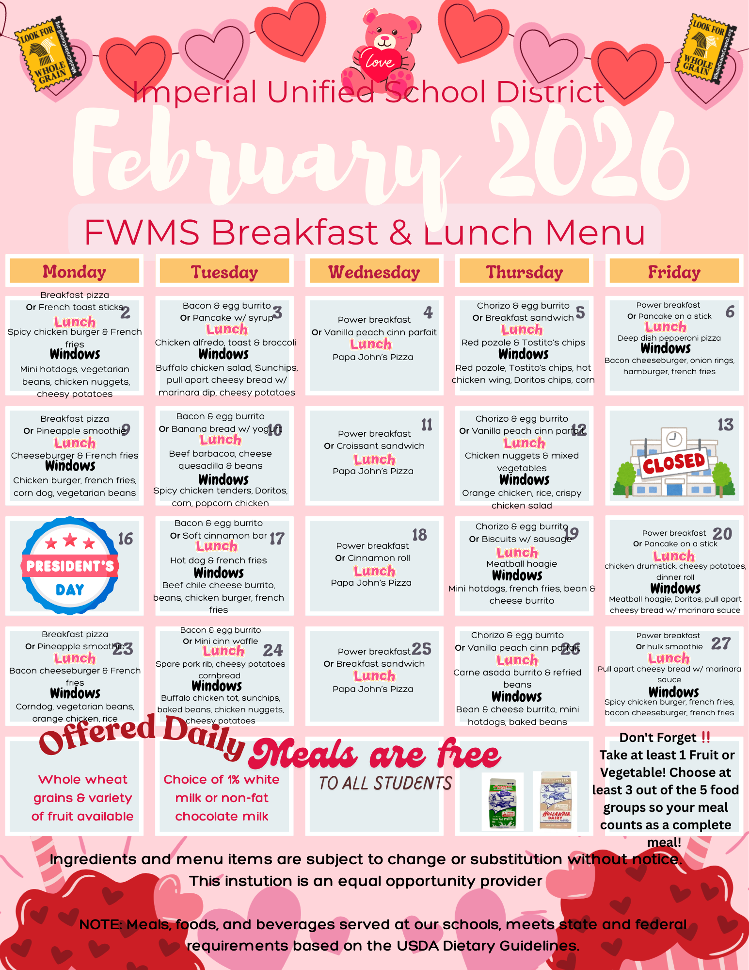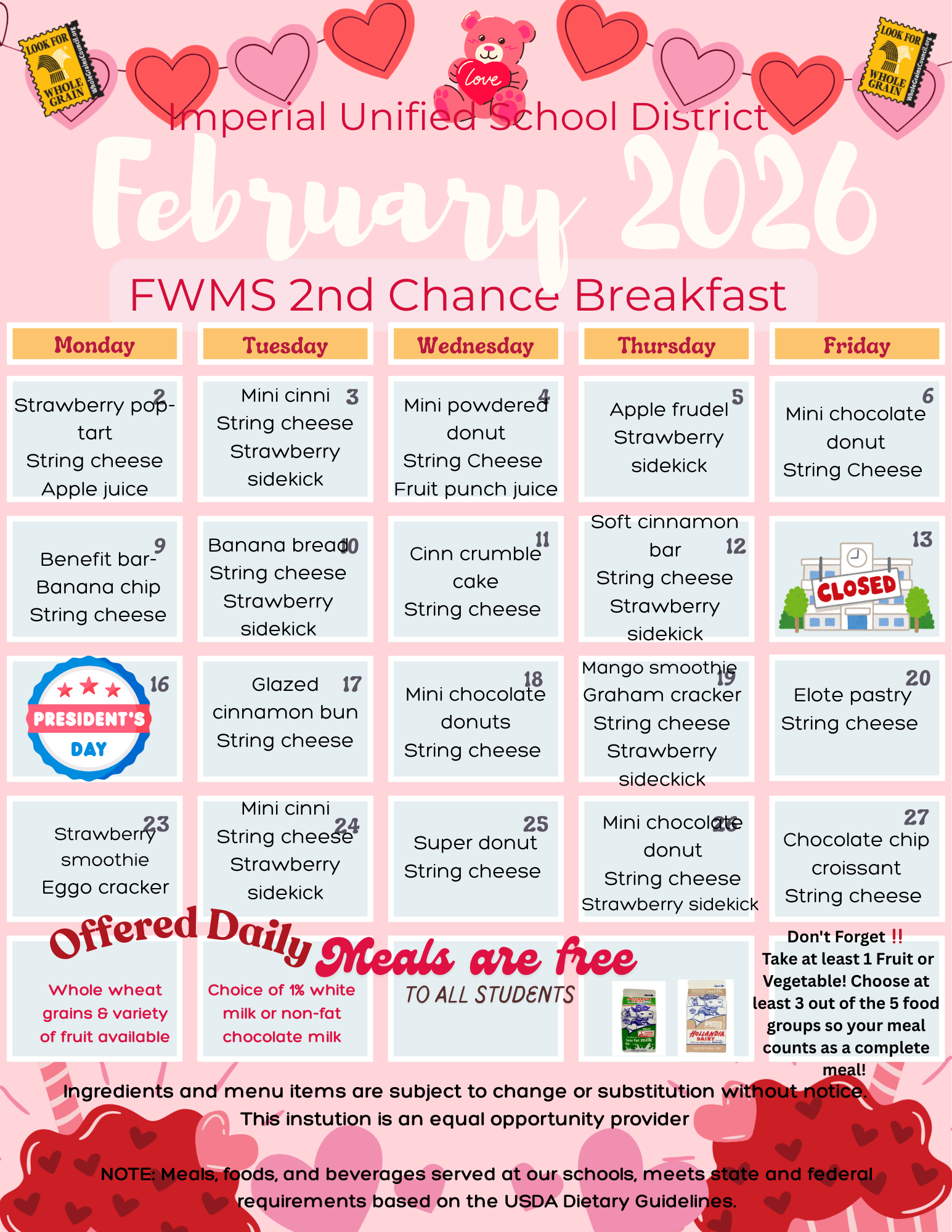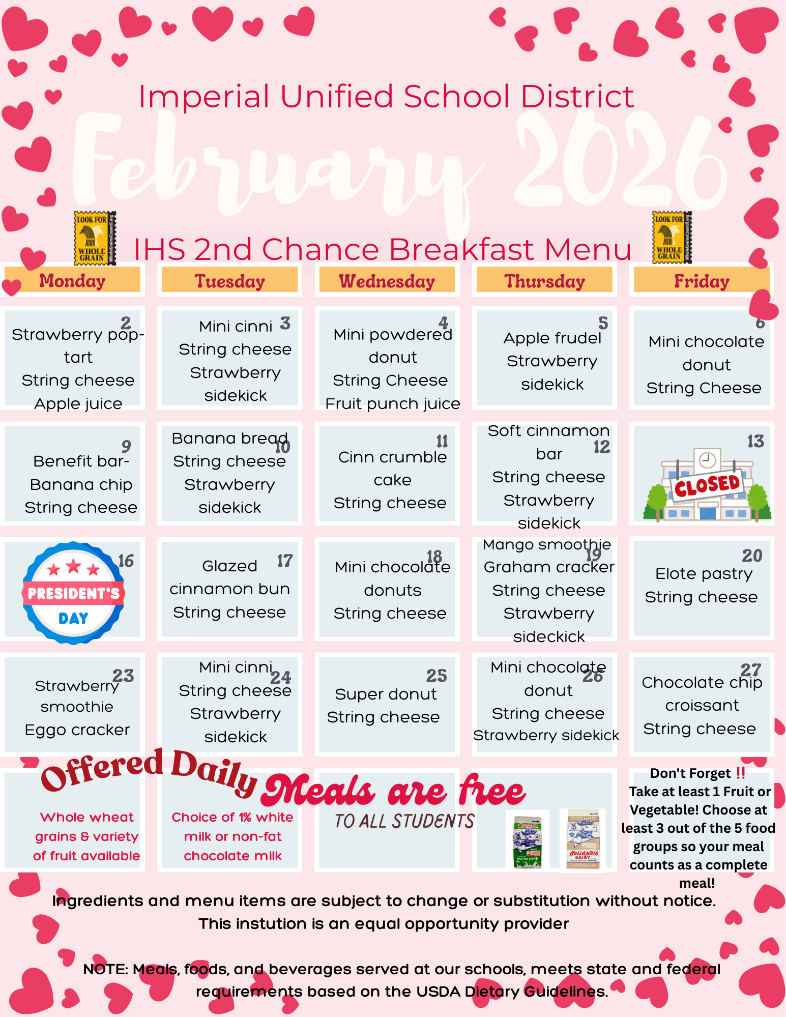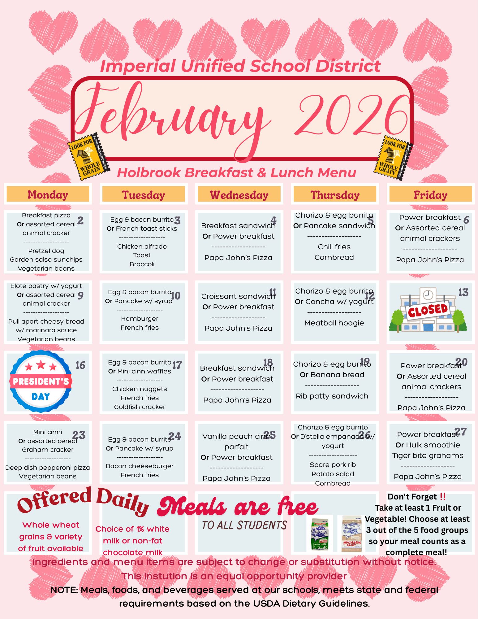 All students enrolled in the Imperial Unified School District will receive free breakfast and lunch for the 2025-2026 school year. For school funding, all families must submit an application.