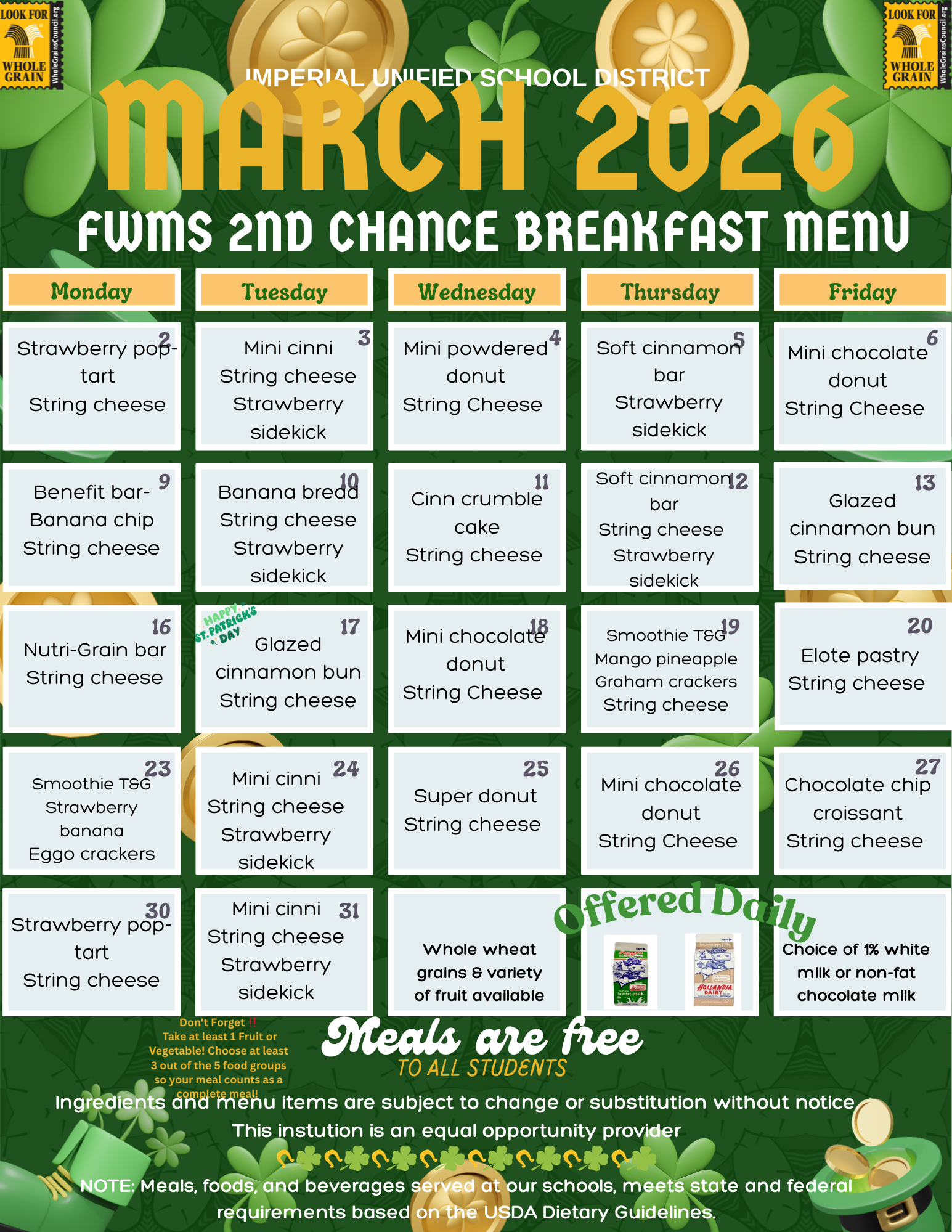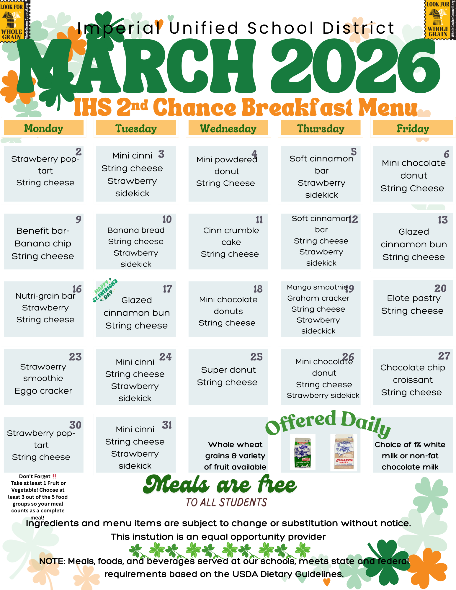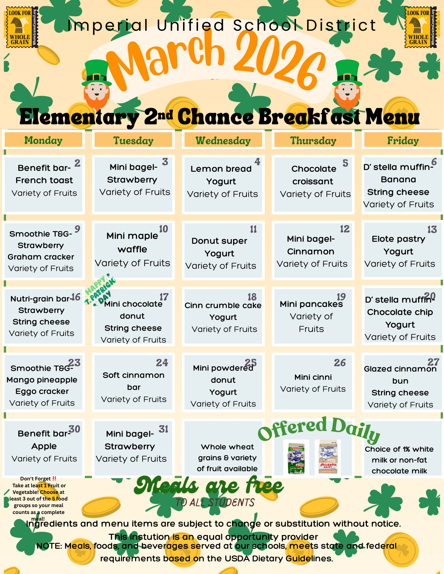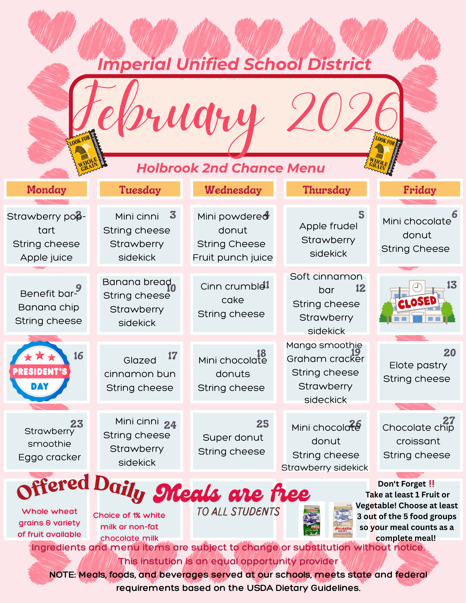 All students enrolled in the Imperial Unified School District will receive free breakfast and lunch for the 2025-2026 school year. For school funding, all families must submit an application.
