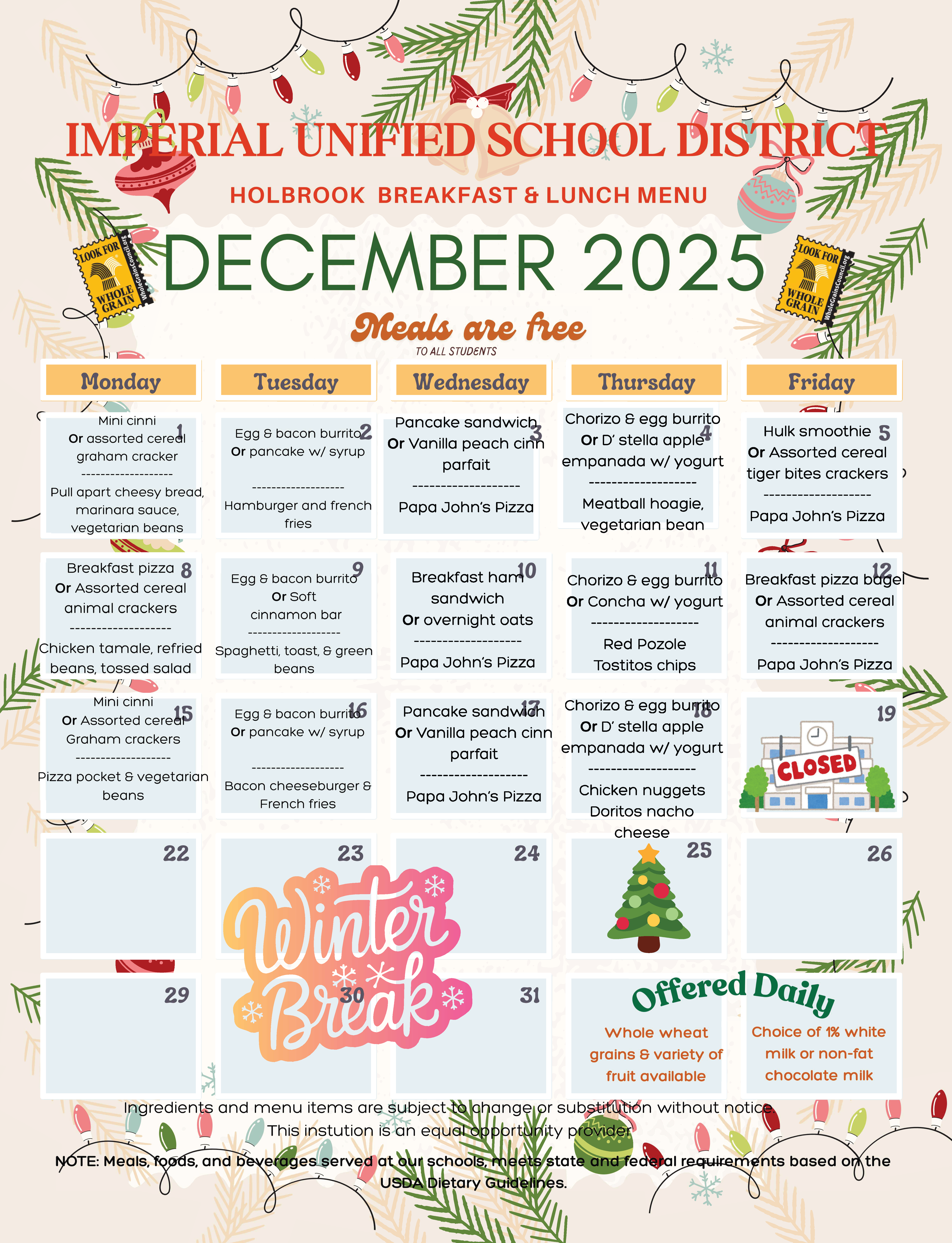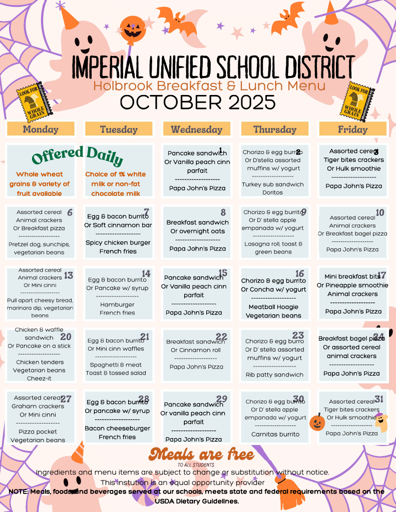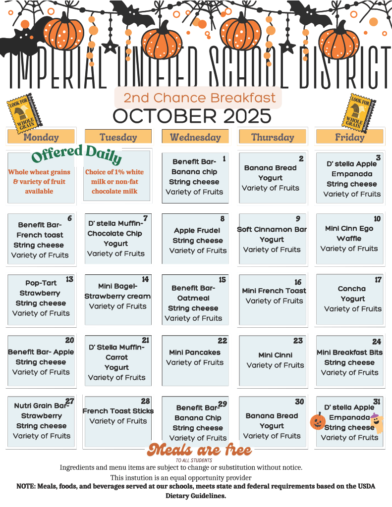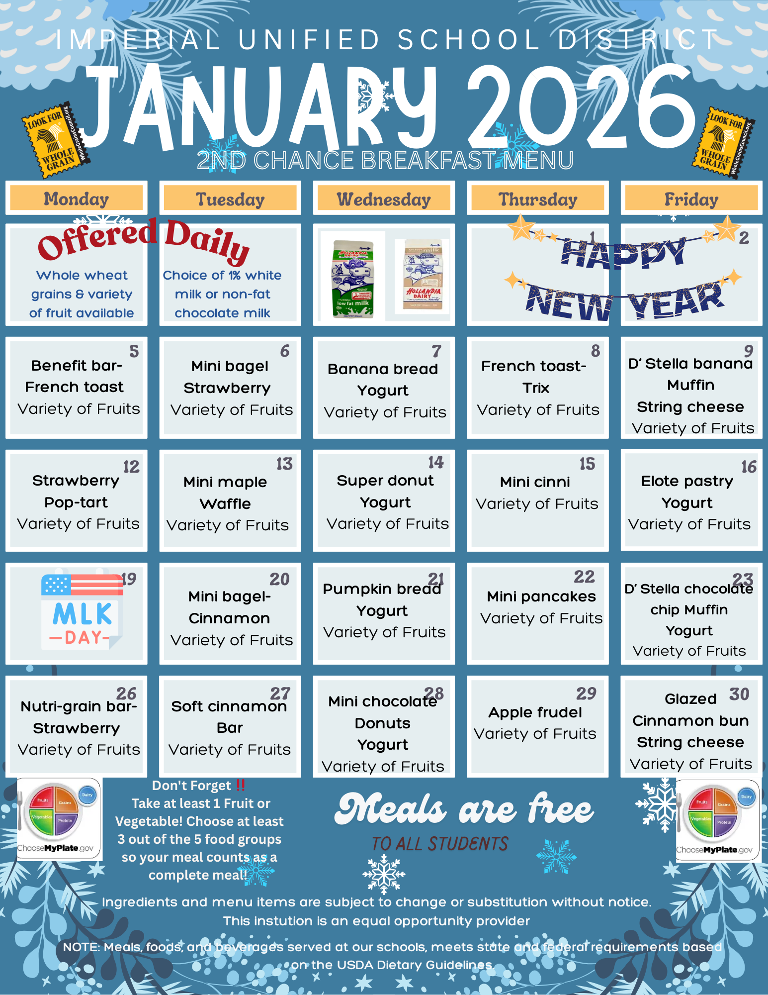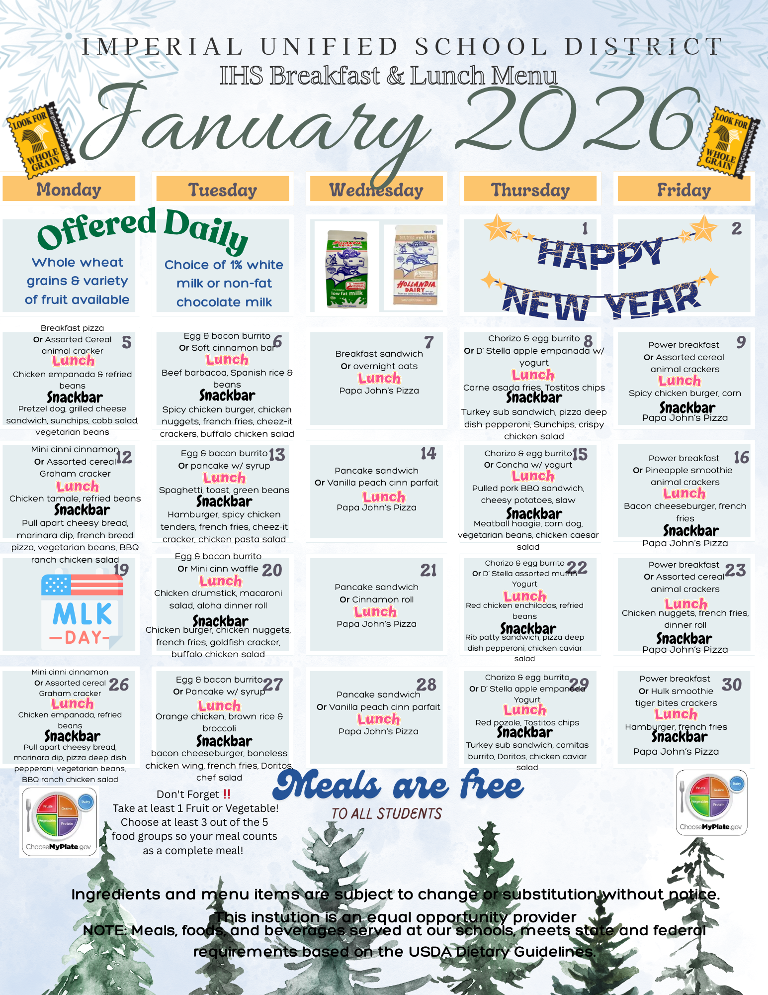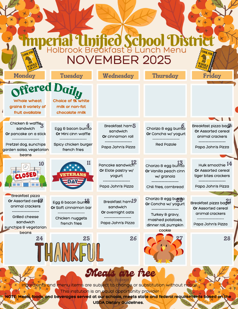 All students enrolled in the Imperial Unified School District will receive free breakfast and lunch for the 2025-2026 school year. For school funding, all families must submit an application.