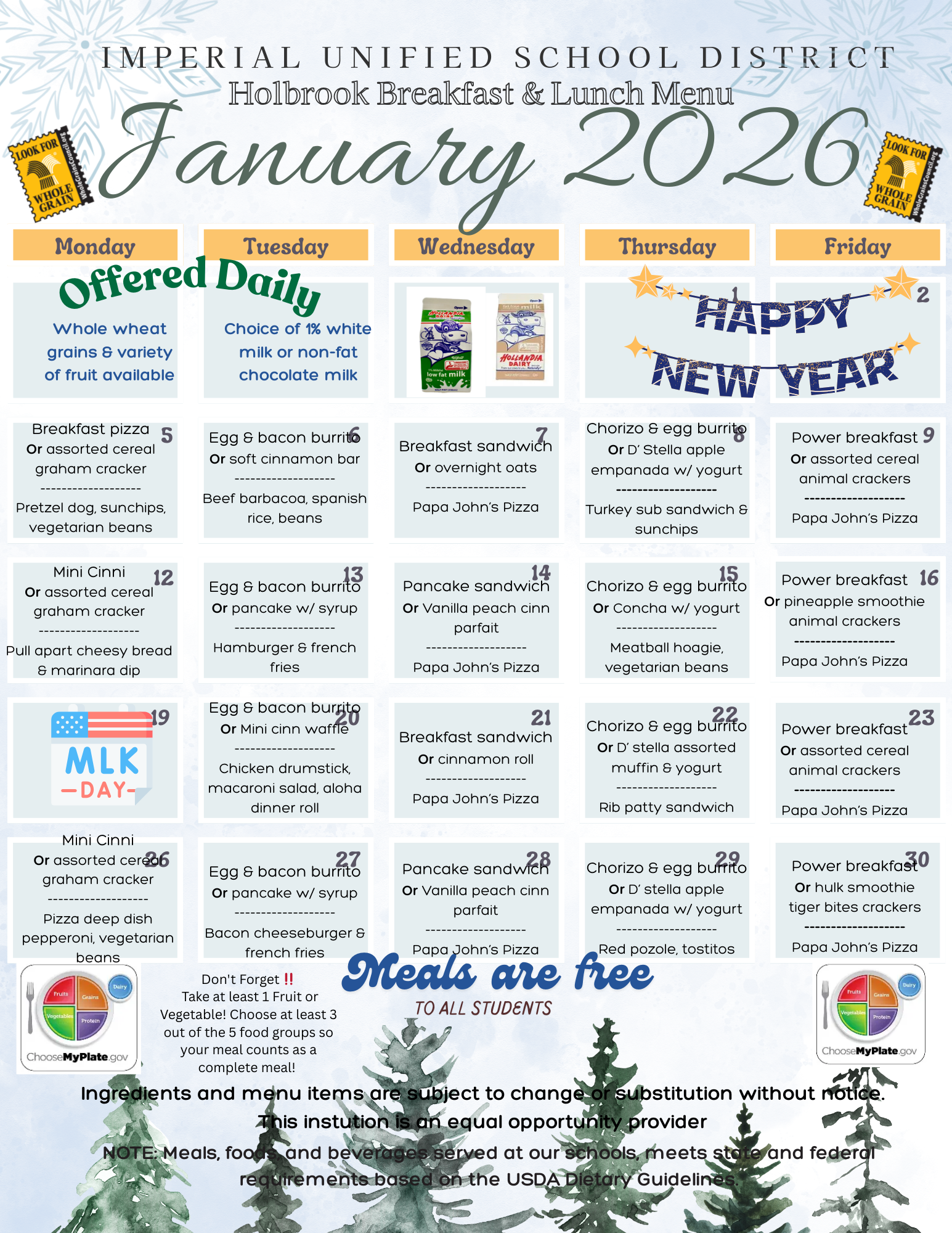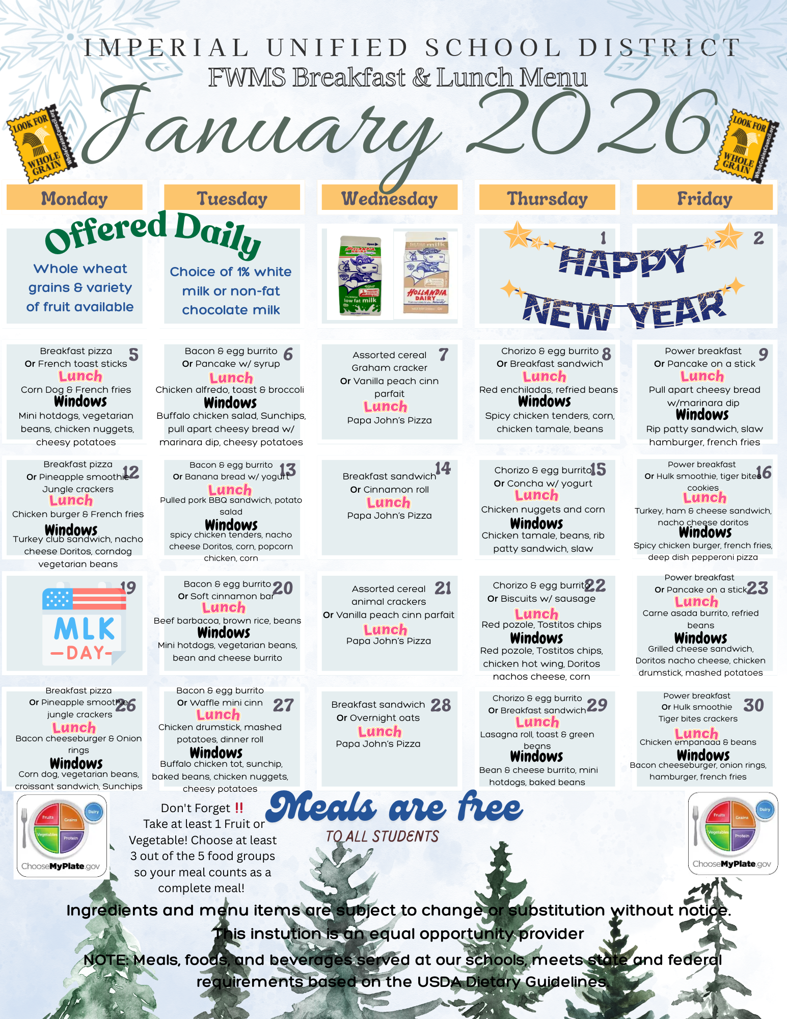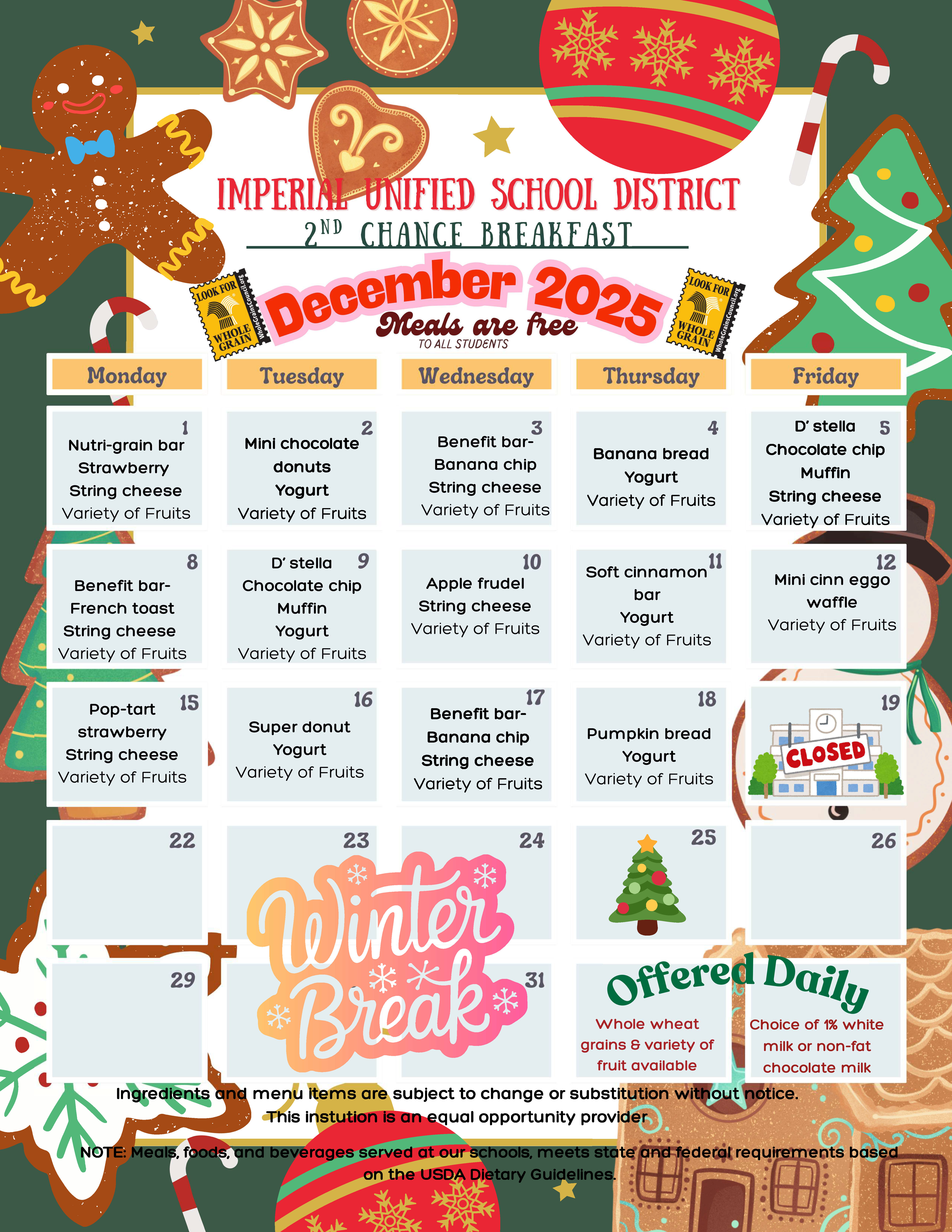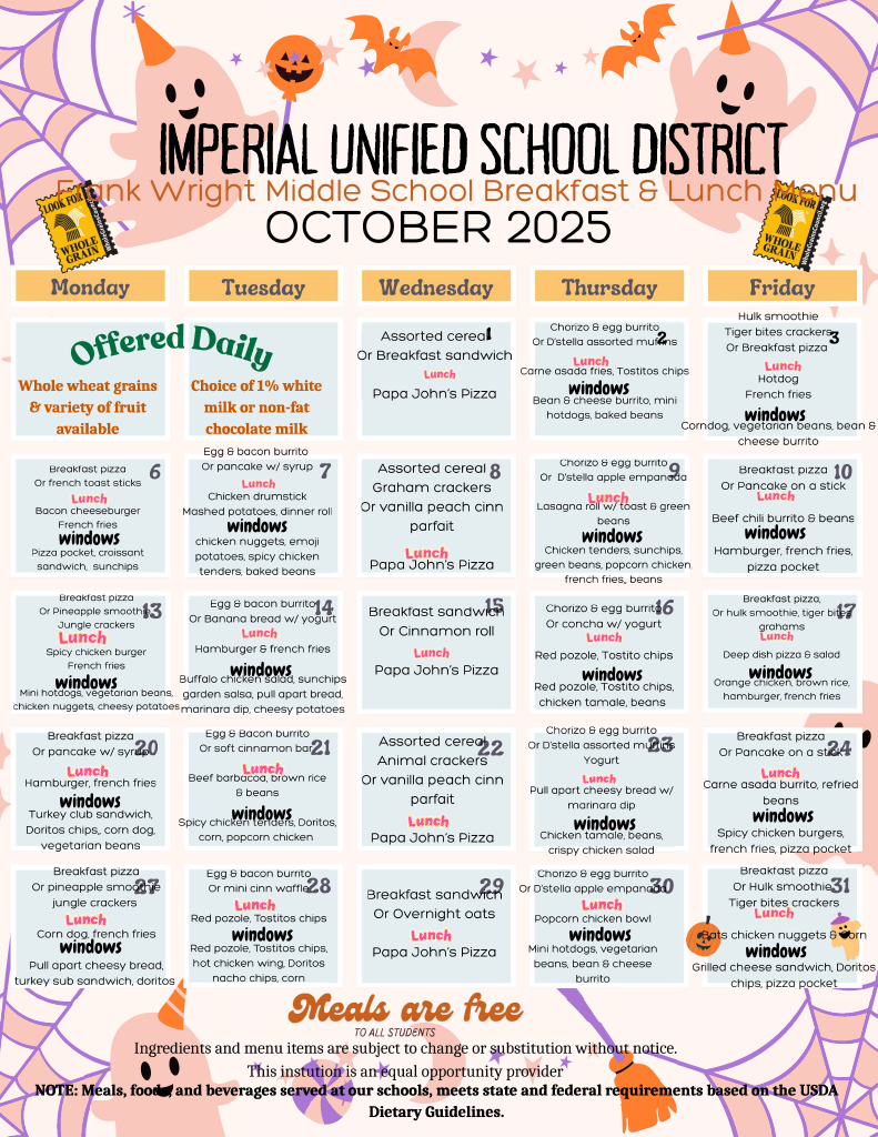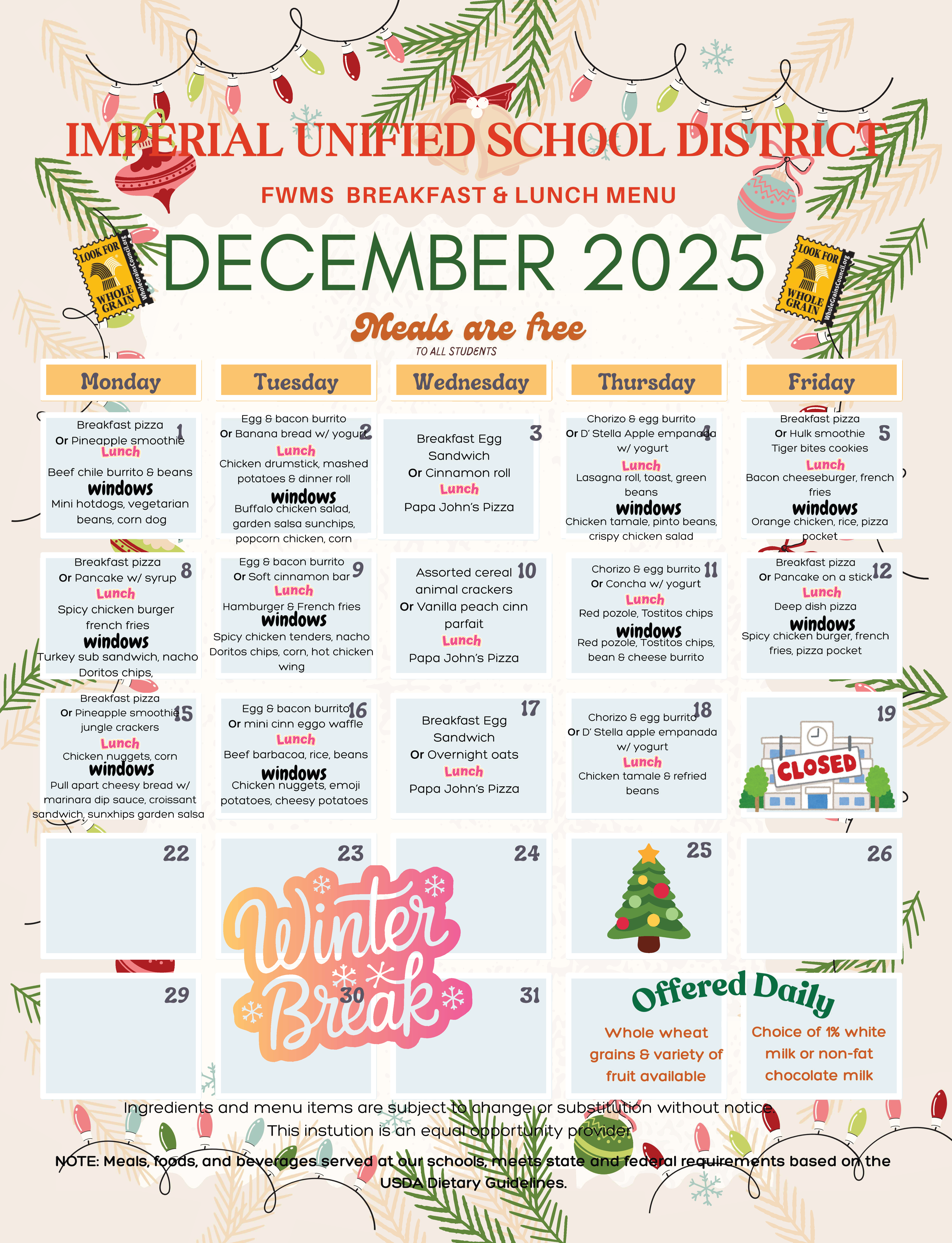 All students enrolled in the Imperial Unified School District will receive free breakfast and lunch for the 2025-2026 school year. For school funding, all families must submit an application.